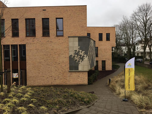 Kom stemmen! De ingang van de stemlocatie is de deur bij de aula, via de tuin.