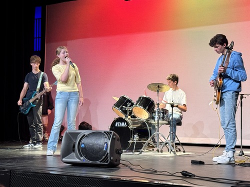 In de grote pauze trad een van onze schoolbands op, als voorbeeld voor project bandcoaching. Groot succes! Wil je ook in een schoolband? Meld je aan via je muziekdocent.