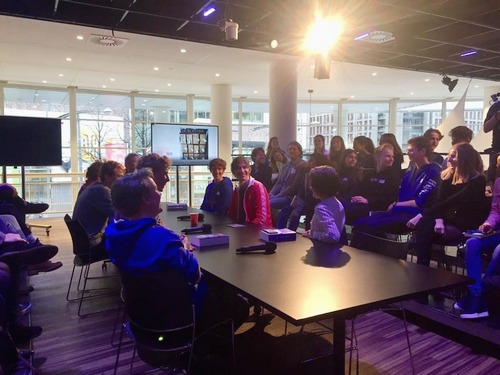 Ook dit jaar deden VCL'ers mee aan het scholierendebat dat hoort bij de verkiezing van de Bookspot scholierenprijs. Maddy (V4) ging in gesprek met Peter Buwalda (zie foto) over Otmars zonen. Anne (V6) met Manon Uphoff over Vallen is als vliegen.