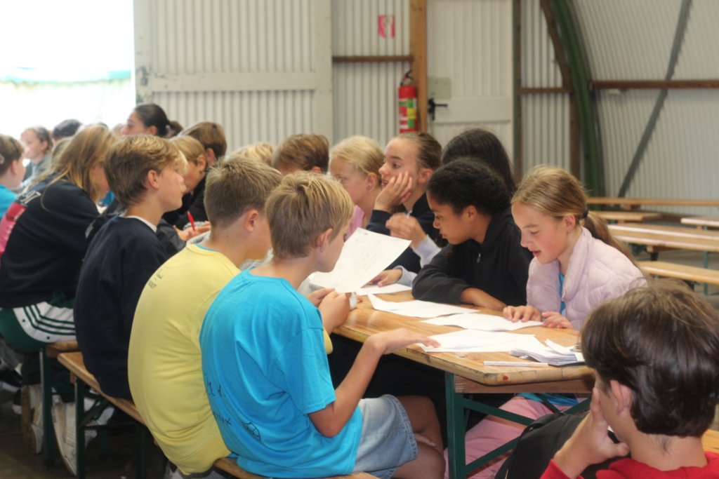 Door hevige regenval hebben wij deze avond gezellig overdekt gegeten in de loods. Mexicaanse wraps en vanille-ijs toe. En daar dus ook gezongen. Als het dan laat op de avond toch nog droog wordt, kunnen we voor de laatste donkere uren van de dag naar buiten, om te weerwolven en lasergamen. Als de bruggers naar bed gaan, is het snel stil in de tenten.